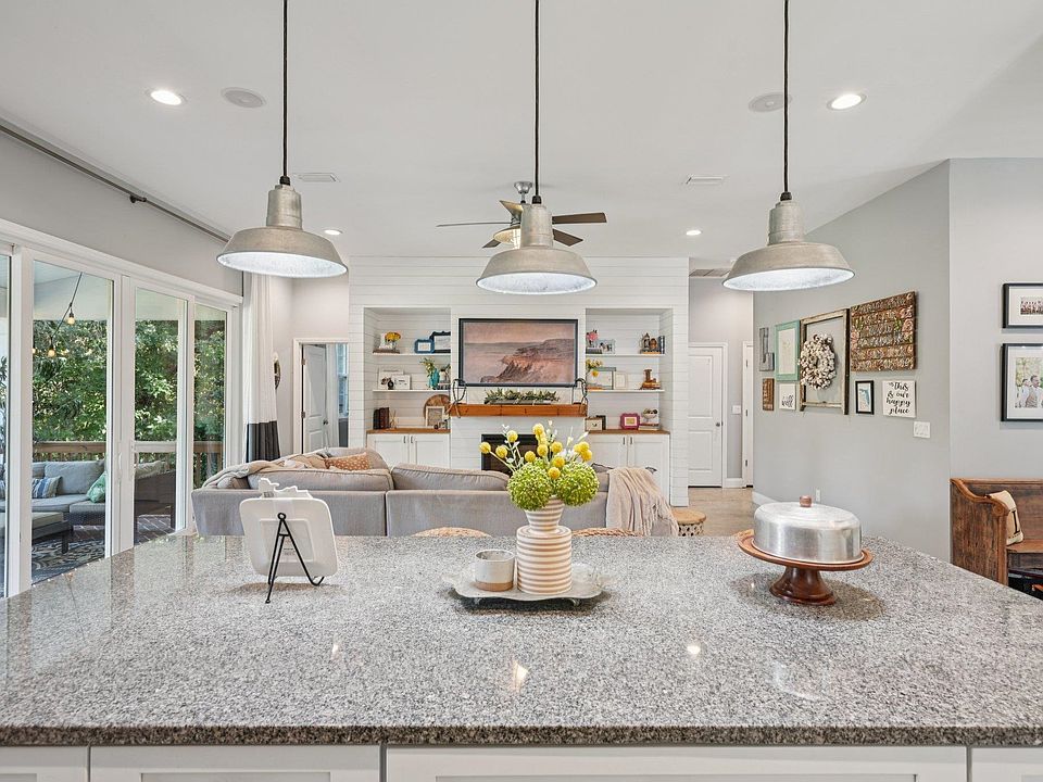 Discover this custom-built home in the exclusive, gated community of Oakbrook- perfectly positioned in the heart of town yet offering the tranquility of a secluded retreat. Designed by architect Karen Cowart and expertly constructed by Corner Construction in 2017, this home showcases exceptional craftsmanship and thoughtful design throughout. Sitting on 2 beautiful acres, the residence features 4 bedrooms and 3 baths, including a main level primary suite and guest suite for ultimate convenience. The kitchen and open concept living spaces flow seamlessly outdoors to fabulous relaxation and entertainment spaces, including a screened, heated and cooled saltwater pool, creating the ideal setting for year-round enjoyment. Upstairs, you’ll find two additional bedrooms, a loft style living room, and a large and versatile bonus room. Step outside to experience true Southern charm with a welcoming front porch, all surrounded by the peaceful privacy of your own 2-acre sanctuary. With its timeless design, quality construction, and resort-style amenities, this Oakbrook masterpiece is in flood zone X, no flood insurance required, so it truly does have it all!