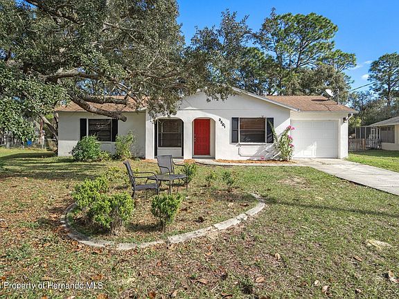 A notable addition to this property is the tile-floored screened-in Lanai, offering a versatile space for relaxation and outdoor enjoyment while providing protection from the elements. Situated on just under a half-acre lot, the house boasts a generous yard, ideal for various outdoor activities or potential landscaping endeavors. Additionally, the recent replacement of carpets in December and the fresh interior paint contribute to the home's renewed and inviting ambiance.