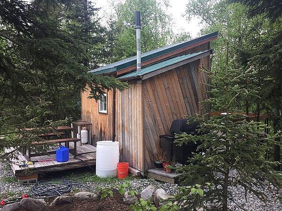One of a kind property in South Anchorage, off the lower end of Rabbit Creek Road at the end of a quiet street, two lots totaling 2.5 acres, Rabbit Creek runs though the property too! There are two adjacent lots that are municipality green belt lots. There are two separate dwellings on adjacent properties, they share a common well and septic. The lot has a 500sf homestead cabin, with living room, kitchen, full bath, laundry W&D, natural gas furnace for heating, on demand natural gas hot water heater, there are many built in shelves and custom one of a kind features for small simple living. The other cabin is a 10'X12" cabin with running water and a composting toilet, full kitchen, desk, living area, Loft for full sized bed and Toyo stove using heating oil for heat, large deck looking over rabbit creek. There is a wood fired cedar sauna down by the river. Both properties have lots of sunlight and great views of the inlet and overlooking rabbit creek. There is also, two 8'X12' storage sheds, a chicken coop and fenced run, fenced garden etc. This property is very unique, keep it rustic as is and live in one cabin and rent the other, or build your dream house here and enjoy this property as much as we do! These properties are being sold together as one, and looking for a cash sale. Please call for more info or if you would like to setup a time to come and see the property! Serious inquires only please...