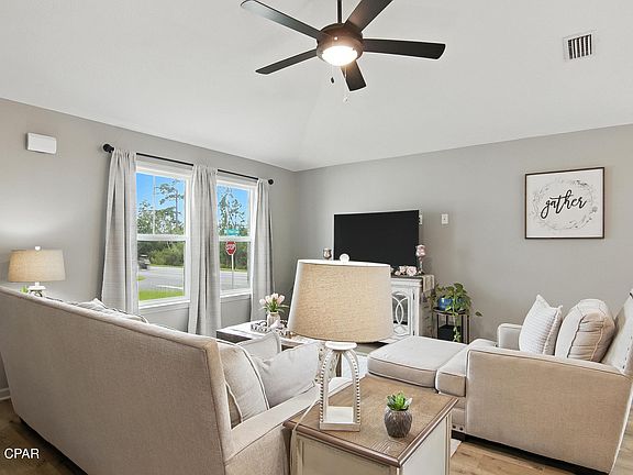 This beautifully maintained home offers modern curb appeal with its striking white brick exterior. Upon entering, you're welcomed into an open-concept layout where the living, dining, and kitchen areas flow seamlessly, ideal for entertaining or simply relaxing in comfort. Abundant windows fill the space with natural light, highlighting the custom wood cabinets and quartz countertops; durable vinyl flooring in the main areas, while carpeting in the bedrooms add warmth and comfort. The spacious floor plan offers flexibility and function, whether you're hosting guests or enjoying a quiet night in. Located in a thoughtfully designed neighborhood with underground utilities and lighted streets, this home combines comfort, style and convenience in one inviting package.