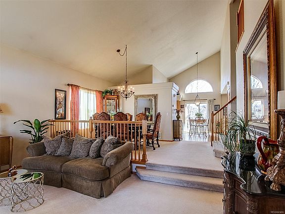 Abundant natural light welcomes you into this 4 bedroom, 3 bath, 3 car garage home in The Meadows. Located on a large corner lot, backing to The Meadows extensive trail system with mature trees & landscaping, this home is sure to delight the senses through all of Colorado's beautiful seasons. The main level boasts of a formal living room, dining room, and nicely appointed kitchen w/ eating space. Vaulted ceilings add to the open feeling and pleasant lighting. Walk out from the kitchen on to a beautiful deck which includes an amazing yard and is adjacent to the greenbelt. Step down into the family room where you can enjoy colder evenings snuggled up next to the fireplace. Upstairs you will find a nice Master Suite, with 5 piece bathroom, plus 2 bedrooms, as well as another full bath. The walk-out bsmt offers a great rec. room & an additional room that can be used as bedroom or office to suit your needs. Easy access to schools, shopping, dining, and I-25! This one won't last long!