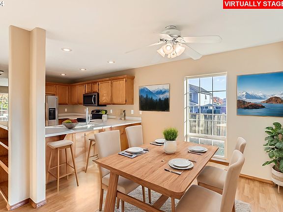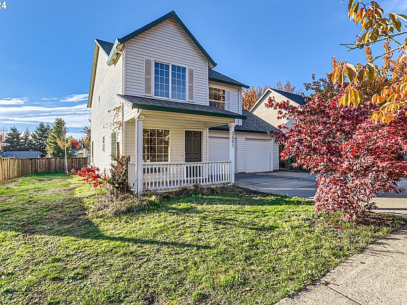 Welcome to this inviting 4-bedroom, 2.5-bathroom home in beautiful Newberg! With its thoughtful layout and convenient updates, this home offers a comfortable blend of style and function. The main level features durable laminate flooring throughout, with both a living room and a family room providing space for everyone to relax. The kitchen is outfitted with stainless steel appliances and includes an eat-at bar, perfect for casual dining or entertaining. Upstairs, you'll find newly installed carpet adding warmth and comfort to the bedrooms, including the spacious primary suite, which boasts a vaulted ceiling, walk-in closet, and an ensuite bathroom with dual sinks. The home’s roof is backed by a 30-year transferable warranty, while the furnace, replaced just 4 years ago with a 94% efficient unit, is ready for easy AC installation if desired.Step outside to discover the expansive backyard, where 32 feet of raised garden beds await your green thumb, and a large 15' x 25' covered deck invites you to enjoy outdoor gatherings year-round. An 8' x 12' garden shed provides extra storage for tools and supplies. Located just a block from Oak Knoll Park, this property combines comfort, practicality, and location to create the ideal place to call home.