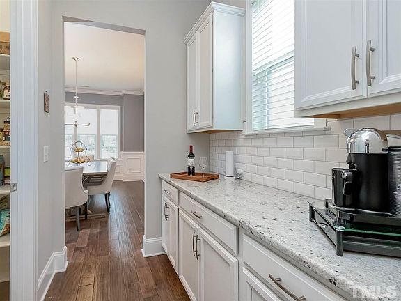 Luxury living in this elegant, executive, Cary home. Modern, sleek finishes everywhere! Coffered ceiling, bookcases, drop zone, gourmet kitchen w/dramatic, oversized island. Gas Range. Guest BR, full bath & powder room on main floor. Secondary BRs w/en suite, Jack & Jill baths. Fabulous bonus room + loft! Owner suite w/sitting room. Serene, wooded-buffer view at fenced back yard, screened porch. Laundry sink, closet, cabinets. Community Pool. Nest thermostats, Ring Doorbell. Near, new Starbucks & Publix!