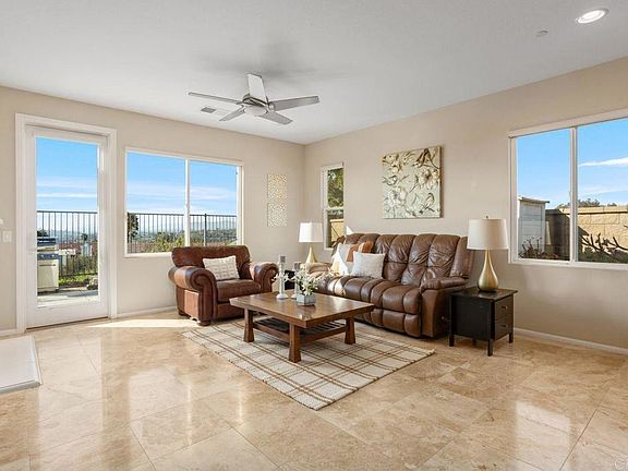 This Calavera Hills home is advantageously perched to capture beautiful northwesterly views of the ocean and mountains! With two bedrooms (including the primary bedroom), plus an office downstairs, and two more bedrooms upstairs, the floor plan suits a variety of living situations! The space is ideal for multigenerational living, larger families, or empty-nesters who want private space for visitors! This home truly lives like a single level with the added bonus of extra bedrooms upstairs! The office downstairs has a built-in desk and shelving which could be removed for a true 5th bedroom! Featuring high ceilings, granite counters, plantation shutters, great curb appeal, and views for miles! The neighborhood offers a community playground, pool and spa. Calavera Hills boasts a convenient location just minutes from the 5 and 78 freeways, close to well-rated Carlsbad schools, hiking trails, parks and only a few miles to sandy beaches and vibrant Carlsbad Village a restaurants, shopping and entertainment!