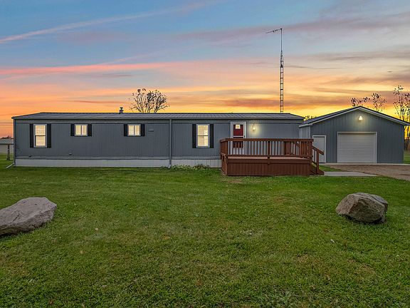 Welcome to this updated Mobile on 1 acre with a brand new 24x24 garage. This home has 2 bedrooms and 1 bathroom. Updates include: New deck, electrical, insulation, drywall, kitchen cabinets, fridge, dishwasher, water softener, furnace, and AC. Washer/dryer/ and stove are used. Immediate possession. There is an additional 1-acre lot with a well/septic available for $35,000. Call for more details. Pending split approval. This company makes no warranty or representations about the contents of this data. It is the responsibility of the parties to look at the property to satisfy themselves as to the accuracy of this information. Taxes were obtained from the local assessor and the taxes could change for the buyer after a closed transaction.