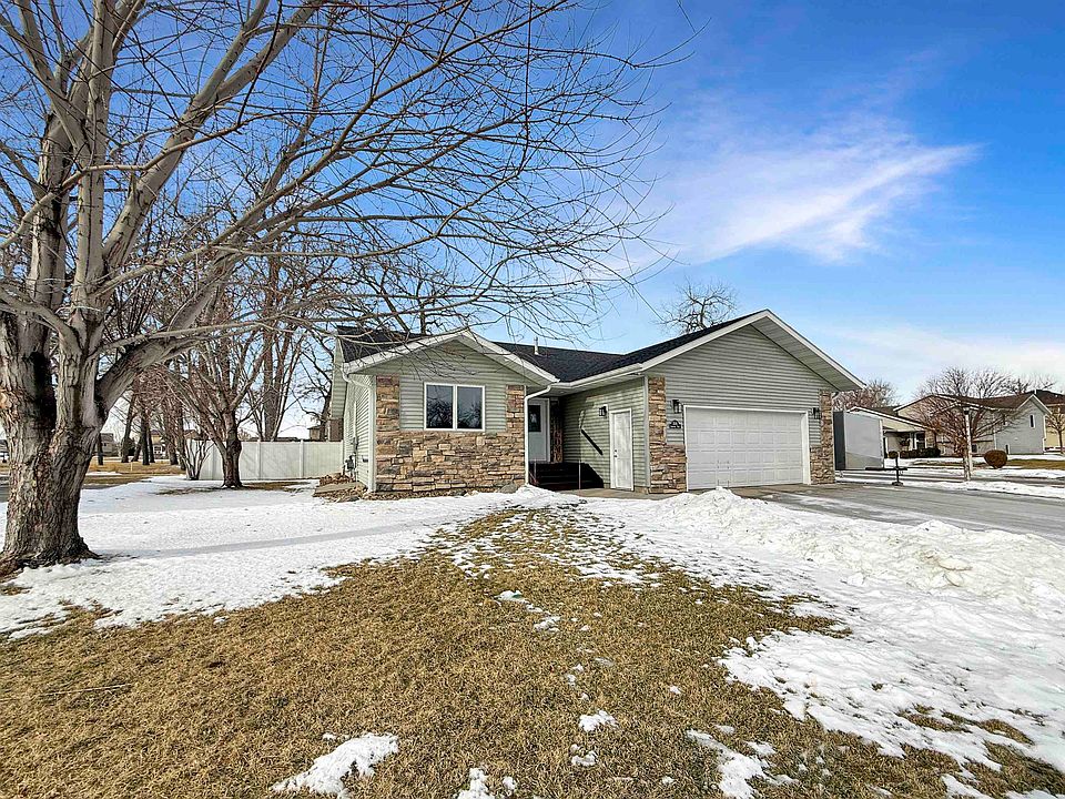 Welcome home to 3501 Sandpiper Trail SE! This 5 bedroom, 3 bath showstopper is tucked away and centrally located in the Lakewood development in SE Mandan. Upon arrival you'll immediately notice the curb appeal with green siding accented by cultured stone and covered entry with maintenance-free steps and soffit lights. This home sits on a 90x125 corner lot on the perimeter of Borden Harbor Park [which features playset, basketball court, skating rink & covered picnic areas]! Shingles, gutters, gutter shields and downspouts new in 2024. Landscaping wraps the exterior of the home with perennials, rocks, boulders and a sprinkler system. Inside, you'll be warmly welcomed with a smartly designed floorplan geared for entertaining and everyday living. The kitchen has vinyl plank flooring, is lined with custom oak cabinetry and offers sleek countertops, updated sink/faucet, island, pantry and four-piece black stainless steel appliance ensemble. Savor your meals inside or head out to the oversized maintenance-free deck for outdoor dining or to sip your beverage of choice and enjoy the sunset from the hot tub. Inside, natural light is abundant with windows a plenty and don't worry as custom blinds throughout provide shade control. The living room has plush carpeting with picture window. Take note of the neutral finishes, modern millwork and updated fixtures throughout. The primary suite has carpeting, ceiling fan, walk-in closet and private en suite featuring dual sinks and window. Continuing on you’ll find bedrooms 2 & 3 with carpeting and convenient access to a full bath. Rounding out the main level is a laundry room with utility sink, cabinetry and in-hall storage closets. The daylight basement is fully finished with a HUGE family room featuring recessed lighting – PLENTY of space to situate furnishings to your liking. Bedrooms 4 & 5 are both good sized and there's a third bathroom space with linen closet. Storage space galore with mechanical room and under foyer space – stow ALL the clutter! The attached garage is impressively fully finished with epoxied floor, floor drain, gas heater, ceiling fan, h/c water, utility sink, extra lighting, storage closets and two convenient walk-through doors. Need space for a boat, camper? Don’t forget about the extra parking pad! The backyard is vinyl privacy fenced with mature trees, shed, hot tub, apple tree & plum tree. Convenient location with quick access to boat ramps, restaurants, Family Wellness Center, Raging Rivers Waterpark, Lakewood Elementary School, walking paths and major thoroughfares. If you're looking for a NEXT-to-NEW & move-in ready home, this is your turn-key ticket – check it out today!