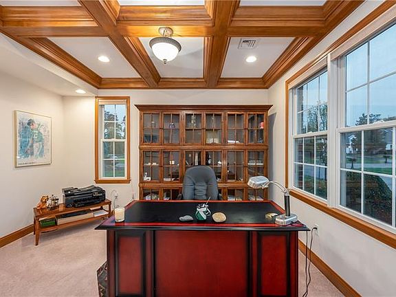 Maintenance Free living at it's finest!! Spacious Carriage home in the Adams Crossing neighborhood. Grand 2 story entryway highlighted by 2 story landing and palladium window and detailed ceiling appointments. Large den with beamed ceiling and bookshelves. Custom designed eat-n- kitchen with spacious center island, ceramic tile backsplash, stainless appliances, pendant and recessed lighting, center and pantry. Formal dining room features crown molding, chair rail, wainscoting and Bay window. A large living room includes custom built-ins and fireplace. A spacious solarium includes abundant glass, vaulted ceiling and paddle fan opens to private patio which is excellent for outdoor entertaining. First floor owners suite includes tray ceiling paddle fan, double sinks, corner Whirlpool and walk-ins. Two large bedrooms on second floor include skylights, vaulted ceiling and a palladium window. A full bath completes the second floor. A first floor laundry includes cabinetry and storage
