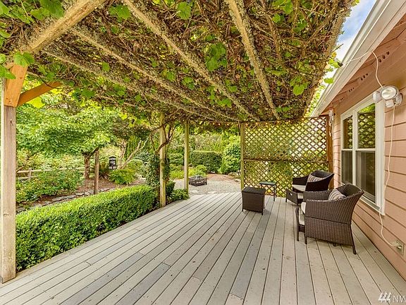 PSE Pays You $$$ For your solar power. Beautiful 3 bed/1.75 bath home on cul-de-sac with upgrades. Bright & open floor plan has 3-sided fireplace, built-in bookshelves & kitchen w/ gas range & butler's pantry. Professionally landscaped,drought tolerant,secluded yard includes beautiful, peaceful water feature. Enjoy a quiet evening on your Trex deck,listening to a waterfall,under a mature grape arbor & watch the stars. Transferable warranties for solar panels, sealed crawlspace & Penguin windows.