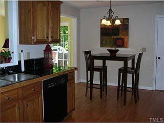 Lovely brick front home on a corner wooded lot in North Raleigh. Relax in the spacious family/sunroom. Downstairs boasts hardwoods foyer, dining room and kitchen. Gas logs warm the living room. Lots of extra storage space including a walk-in crawl space. Vaulted ceiling in the master with a large bathroom featuring tub and separate shower. Upgraded light fixtures and more!