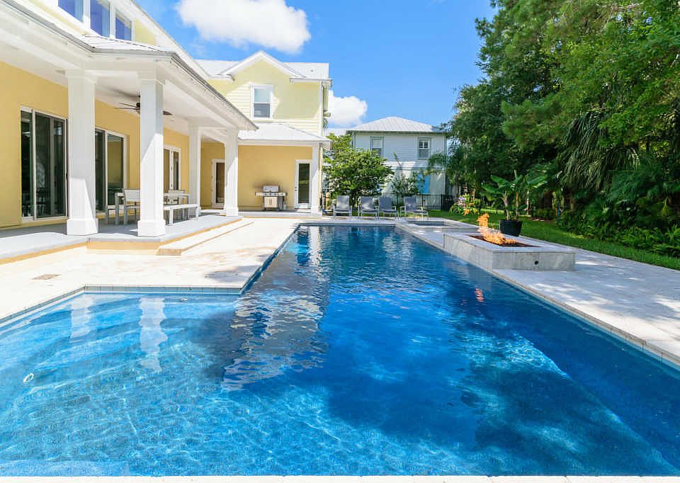 Quietly nestled in the only gated neighborhood in Jacksonville Beach, The Sanctuary, this modern home is built for entertaining and living life outside! Inside this beautiful home you will see hardwood floors, a grand foyer/ living room w/ two story ceilings with views all the way to the pool, jacuzzi & fire pit. The gourmet kitchen boasts features of sleek, custom cabinetry, white tile, quartz counters, stainless backsplash & stainless appliances including a brand new double door fridge & dishwasher. Downstairs master bedroom suite has a private door to the backyard, large bath w/ built in closets. There is ensuite bedroom on the first floor off the foyer. Upstairs features a theatre room (bedroom 3) w/ full bath, two bedrooms w/bathroom vanities & shared shower/toilet. (See addl info.
