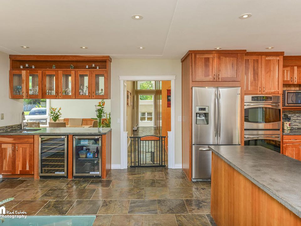 4 bedrooms w/ 2 full/2 half baths, Gourmet kitchen with breakfast bar, formal dining,formal living room,huge recreation/sun room. The sun room can be converted into a garage for around $20K. New triple pane windows. Unfinished basement with ample storage for your fishing, camping, bicycles, skis, etc...Two new, large driveways w/RV and or boat parking. 2 exterior sitting areas- 1) Private deck in back for barbecuing. 2) Pavered patio in front for soaking up the southern exposure. Custom built shed for all your yard tools. Property is minutes from downtown,shopping, airport and coastal trail. Entire property has been newly remodeled. Please see additional documents for list of improvements. Listing agent is the seller of the property.