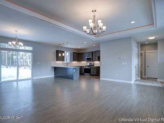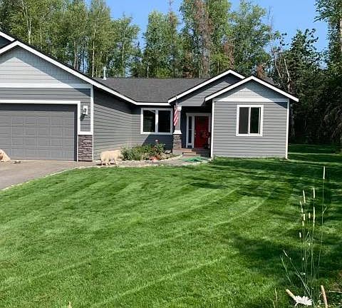 Newer construction ready to move right in. You will love this elegant design. Access to trails nearby and still close proximity to town. Popular split floor plan with master on one side of the house and spare bedrooms on the other. Stainless steel appliances, appliances stay with the house. TV in the living room and master will also stay. Wash tub added to the garage, cabinets in garage stay.Water softener. Paved driveway and grass in the yard. Better than new construction! *Photos are from original construction