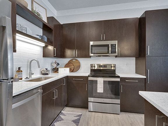 - Exterior features: 24 Hr Fitness & Cardio Room w/ TRX System, 9 Ft - 11Ft Ceilings Throughout, Availability 24 Hours, BBQ/Picnic Area, Bicycle storage, Bike & Ski Repair Shop, Community Work Spaces, Cyber Cafe, Efficient Appliances, Electric Vehicle Charging Stations, Elegant Social Room & Coffee Bar, Expansive Closests w/ Open Air Shelving, Extra Outdoor Storage * Select Units, Flooring: Wood, Free Weights, Guest Room, High Ceilings, High-speed Internet Ready, Lawn, Modern Kitchens with Subway Tile Backsplash, Night Patrol, On-Site Management, Outdoor Game Center, Pet Spa for Washing & Grooming, Quartz Counter Tops Throughout, Recessed LED Lighting, Seasonal Carwash, Short Term Lease, Stainless Steel Energy Efficient Appliances, Sundeck, Upgraded USB Charging Outlets