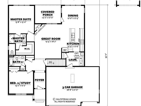 The Sandpiper II floor plan features 2 Bedrooms, 2 Baths, optional sunroom, and includes a 3-car front load garage (Premier Collection). This highly-popular design originated from our Waterside communities offers an open concept design.