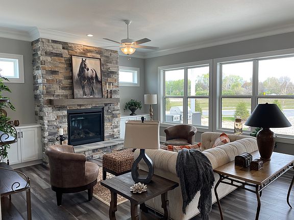 This beautifully furnished model home in Stoney Creek by Gulfsteam is available for purchase with a one-year leaseback. This custom villa features a fantastic open floor plans with a fabulous kitchen, butler's pantry, and spacious walk-in pantry, tall ceilings and doors throughout, lots of storage, and an outdoor grill with an oversized patio is included on the veranda. Sit outside on the front porch and view the lake. This home is superbly landscaped with evergreen trees that surround the home. This home also includes a partial basement large enough for extra storage.