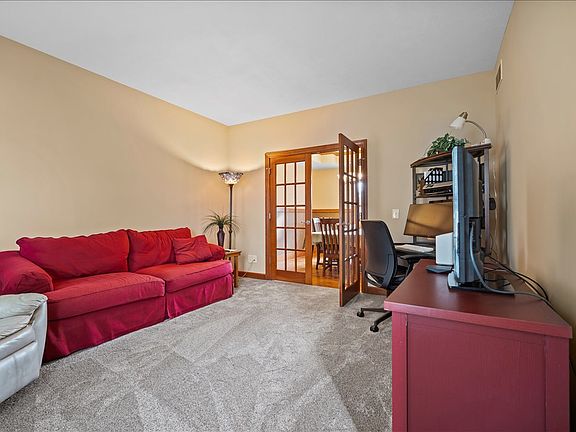 Beautifully maintained 5-bedroom, 3.5-bath home with a 2-car attached heated/insulated garage in the desirable Benjamin Elementary district. Major updates: roof (2020), water heater (2021), high-efficiency Trane AC & furnace (2023), new garage door/opener (2023), and new basement carpet/flooring (2023). The heart of the home is the kitchen, offering abundant cabinet space, a prep island, eat-in area, and a formal dining room with hardwood floors. The cozy family room features a fireplace with built-in bookcases and an additional sitting area for gatherings. Step outside to an elevated deck overlooking the serene backyard with no backyard neighbors-the perfect retreat! Upstairs, the primary suite impresses with a lighted tray ceiling and an updated bath featuring a glass-enclosed shower, whirlpool tub, double vanity, and walk-in closet. Three additional bedrooms and a full bath complete the second level. The finished basement is an entertainer's dream with daylight windows, a newer wet bar with beverage cooler and garbage disposal, built-in shelving, a full bath, and a spacious bedroom. Pool table and air hockey table stay! Central vac on the main level and in the basement. A whole-house humidifier and thoughtful updates throughout complete this move-in-ready home in one of the area's most sought-after locations. Schedule your private tour today!