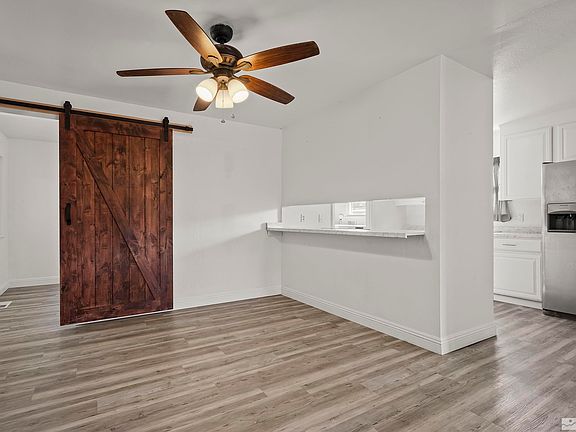 Discover this charming one-story home in a sought-after Northwest Reno neighborhood. The owners have made extensive upgrades in the past 7 years, including a new water heater (2017), roof, and paint (2018), swamp cooler (2020), flooring (2022), and furnace (2023). Natural light fills the spacious living room, and the updated kitchen features newer appliances, solid surface countertops, and breakfast bar. Great work from home set up with an enclosed office off the living area., Many options for the converted garage, from a third bedroom to a workout room or secondary living space. The large backyard with mature trees is perfect for entertaining. Located near shopping and parks, this home is a must-see!