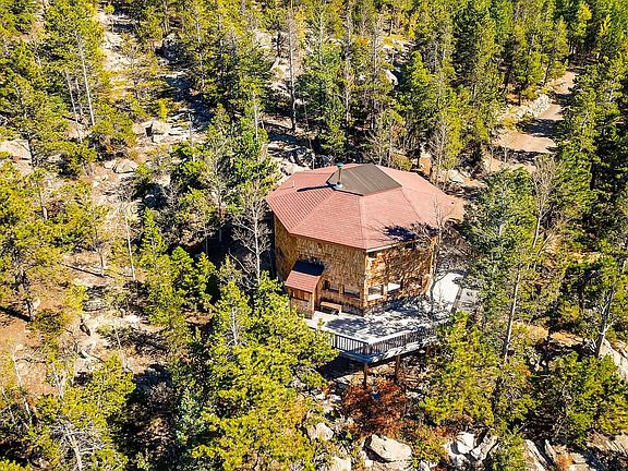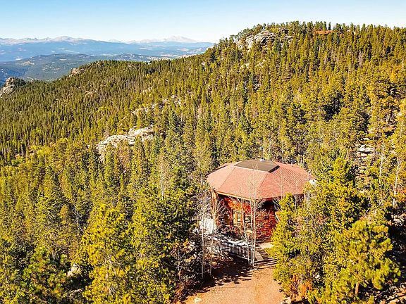 This is the affordable rustic home with INCREDIBLE mountain views that you've been waiting for!! The PANORAMIC VIEWS of the Continental Divide will take your breath away! You'll love relaxing on the wraparound porch hearing nothing but the mountain wind and chirping animals as you gaze upon thousands and thousands of acres of forest. Perched atop just over 43 acres of land ending at a conservation easement and national forest land, this octagon-shaped home features an open layout, wood-burning stove, kitchen, 2 bedrooms, 2 bathrooms, a bonus room, and a storage/mechanical room. A 300 foot well provides water, and the addition of solar panels would take this property entirely off the grid! Keep it rustic, completely remodel it with your custom finishes, or build it out and expand the size of the home to your specifications on the flat ground immediately to the north. Just 20 miles to Boulder and 35 miles to Denver! Sold as-is. Buyer to verify all information.