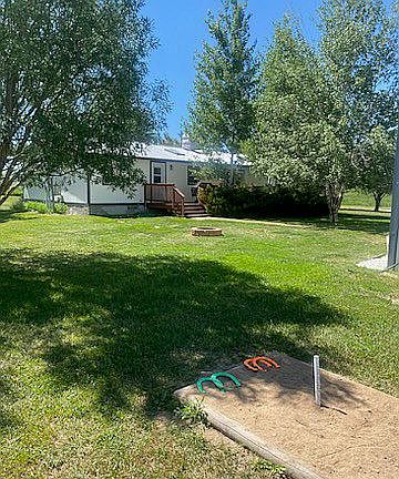 Dbl wide modular with fenced land. 30x40 detached 2 car garage/shop. Pellet stove, large back deck, front deck, mature landscape, fenced hay yard, 20x40 lean-to shed30x20 tack shed, 2 potable wells. Prime location, just under 4 miles from town on the state highway. 10 minutes from national forest access.