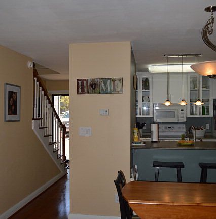 What a find! 3BR/2BA townhome with the master bedroom down, hardwoods, remodeled tile baths, 2 large walk-in closets, jack-n-jill bath upstairs, pantry, new light fixtures, GR/DR combo, remodeled kitchen, breakfast bar, fireplace w/built-ins in GR, patio & outside storage.