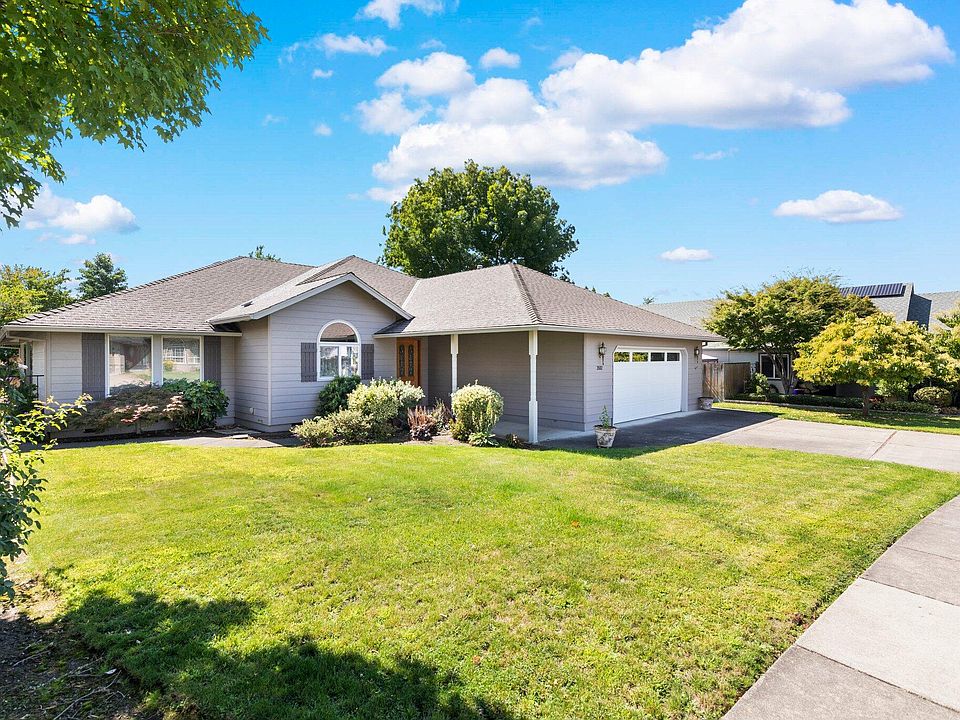 Don't miss out on this beautiful single story three bedroom, two and half bath custom home located in an established neighborhood. This home has great curb appeal with well maintained, mature landscaping in front and back with an inground sprinkler system. You are met with a formal entry way that leads to a large living room with big windows for tons of natural light. The spacious kitchen and dining area have real oak floors. Three large bedrooms and the primary has a nice sized walk in closet. Laundry area with overhead storage and the sale includes the washer and dryer. Relax under the large covered back porch with room for entertaining. Don't miss your chance to make this home yours and to add your own personal touches.