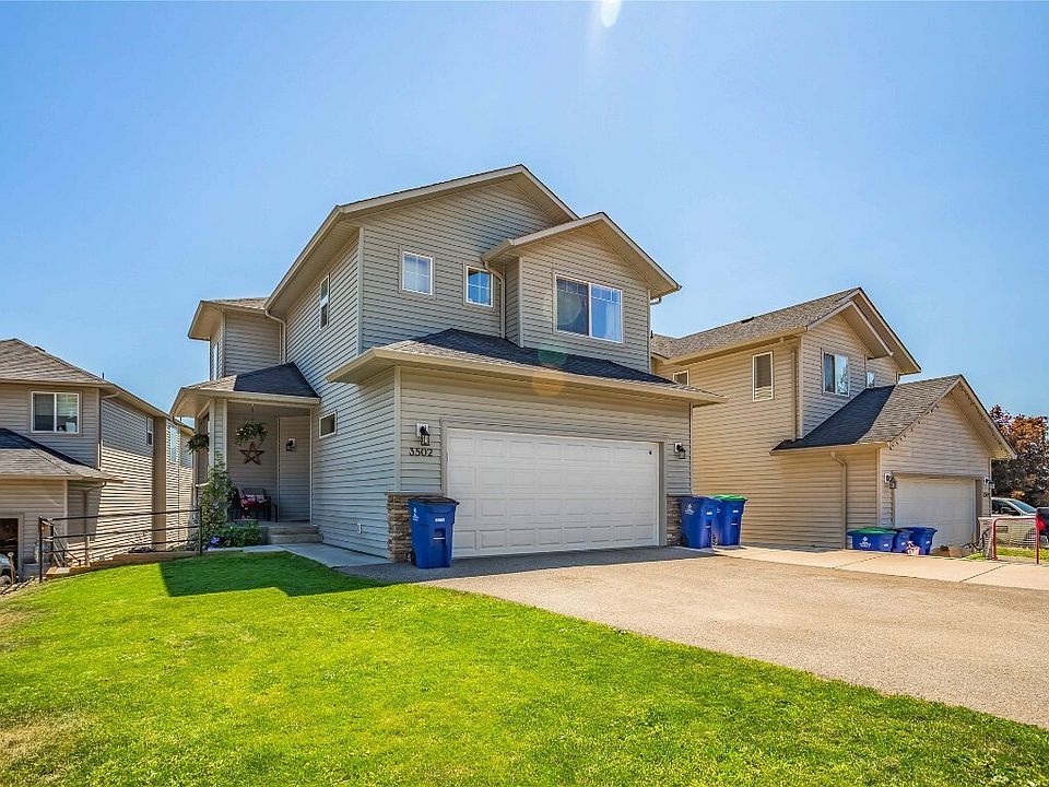 Spacious 5-bedroom, 4-bath two-storey home in Crown Town Estates - a unique floor plan as it has a two-storey vault, with a loft area, allowing for lots of sunlight and lovely mountain views! The main floor features an open-concept kitchen, living, and dining space, large windows, a spacious laundry room, and a two-piece bath. The second floor hosts 3 bedrooms & 2 full baths, with the primary bedroom having a large ensuite with dual sinks and is freshly tiled. All upstairs bedrooms are spacious. The loft area could be used as a den, library or office - great versatile space. The lower level walkout was completed with permits for a family member in 2018 - and is used as a mother-in-law space. It features a kitchenette, two bedrooms, laundry, a full bath, and a living room area. A new walkway was just completed in 2024, which gives great access to the rear yard and lower level. The yard also has a garden plot, a peach tree and a raspberry bush. Double attached garage and long enough driveway for an RV. On WFN land with a 99-year lease, so no Property Transfer Tax! Lots of living space for a great price.
