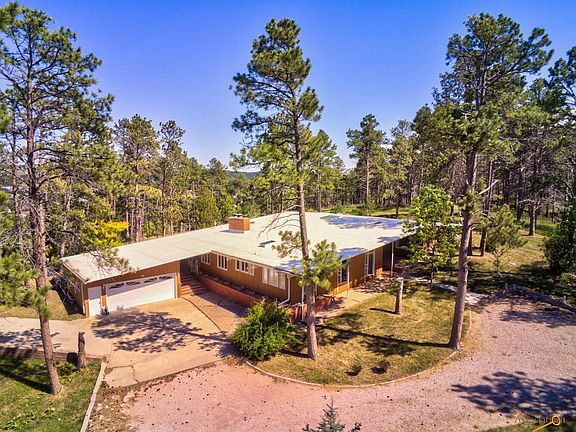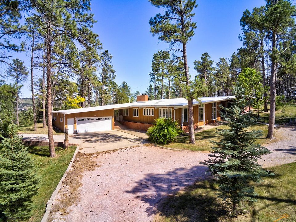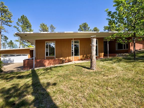 The epitome of mid-century modern architecture in a location that is almost impossible to beat. You will love this home from the day you move in, and you will probably never consider leaving it again. This classic architecture has been preserved in all its glory. It had to be one of the finest homes in town when it was built in 1963. The laminated beams and tongue and groove ceiling spread throughout the home and out to the covered patios and even into the garage. Back in the day, there were even pine trees growing through the roofs in the patios. The four-to-six-foot overhangs provide shade and protection from the elements. The large open rooms were way ahead of their time. The enclosed pool table room used to be a three-sided patio but is now enclosed. But the best part of all is the setting. The pine covered lot is home to turkeys, deer, fox and even a raccoon or two. The view expands through west Rapid City and even down to the gap. Daytime views and nighttime lights.