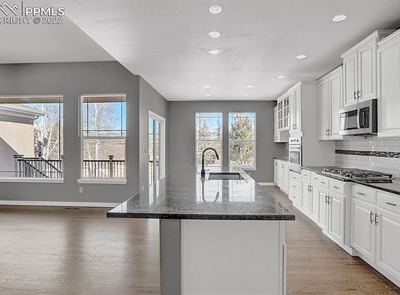 REMODEL -2021 Ungraded Gray Steel Granite countertop, modern touches, white cabinets, enlarged restructured center granite island with a large farmhouse sink, new fresh carpet throughout, new vanities, double, new paint throughout. Remodeled - Large open kitchen New GE Stainless Steel Appliances, Profile Gas Cooktop. Location, Location, Location, Minutes from I-25, D20 Schools, Pine Creek Golf Course Neighborhood, Fantastic Ranch Home in very desirable Pine Creek!!! The home will be available June 2021, move-in ready.... Wonderful ranch style home with open layout floorplan that centers around the kitchen, open great room and dining area, 3 bedrooms on the main floor and a large bedroom with a huge storage closet downstairs... Bathrooms have been updated with a Vanity with Cultured Marble in both bathrooms, Hardwood Floor Treatment, Composite Deck... Open Floor Plan... Huge Kitchen... Large Front Porch (reminds me of the south!).... My favorite feature is the stone gas fireplace!!!! (Beautiful gray stone) D20 (Academy District 20) school Mountain View Elementary School is one of the best elementary schools in the country... (The kids learn, love school, and very high national test scores.) Great House in an amazing neighborhood!!! YMCA, LifeTime Fitness, UCHealth Memorial Hospital North just down the street... About 2700 square feet finished and 1400 square feet unfinished. (rough-in plumbing for an additional bathroom in the basement...) Huge unfinished basement... UPDATE!!!! REMODEL - Ungraded Gray Steel Granite countertop, modern touches, white painted cupboards, enlarged restructured center granite island with a farmhouse sink, new fresh gray carpet throughout, new vanities, double, new paint throughout. Remodeled Large open kitchen with updated larger, modern, New GE Stainless Steel Appliances, Profile Gas Cooktop. New Lawn Sod Lovely Home In Pine Creek* Gray and Modern!!!! Large Open Great Room With Rock Fireplace, Hardwood Floors Throughout. Kitchen, Dining, Great Room & Eating Nook*Hardwood Entry*Large Master With Attached 5 Piece Bath, Walk-In Closet*20X10 Composite Deck*Mature Landscaping Front 7 Rear*Fenced Rear Yard*Corner Lot*Front Covered Porch To View The Mountains Facing South*3 Car Tandem Garage With Lots Of Room*Home Is Wired For Sound In Great Room, Dining, Kitchen, Master Bedrm & Deck*Kitchen Height Cabinets In Master Bath There is an additional large 4th bedroom with a large walk-in storage closet in the huge unfinished basement. The total finished square feet is around 2750 with about 1350 unfinished. The bathrooms have been updated with tile and marble.