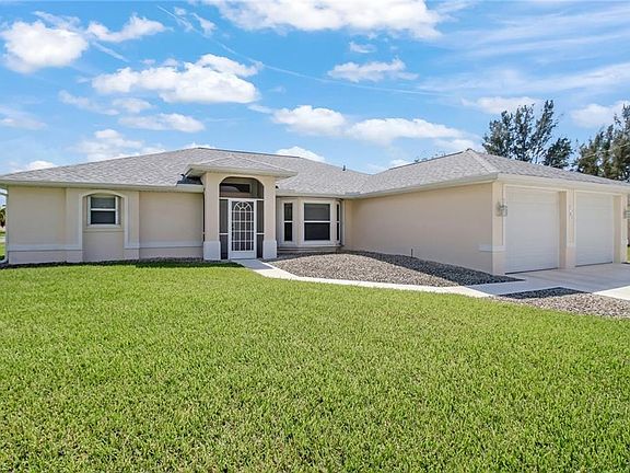 Don't miss the opportunity to own this meticulously maintained custom built pool home in SW Cape Coral. Conveniently located within walking distance to the Burntstore boat ramp, and a short drive to Pine Island/Matlacha area. This spacious split-floor plan offers, large living area, formal dining area, and over-sized garage with additional utility room with AC. The kitchen features ample cabinet space, eat-in area, and peninsula w/breakfast bar. The primary bedroom has walk-in closet(s), sliding glass door with access to lanai, and bath that features dual vanity with new countertop & sinks, walk-in shower, and soaking tub. Interior upgrades include; custom blinds, new carpet, paint, water heater, custom fans/lighting, and upgraded washer & dryer. The exterior features gorgeous pool area with large under-truss lanai great for entertaining and an abundance of upgrades/features that include; accordion shutters, newer AC, generator hook up, upgraded irrigation system, new roof in 2019, new whole house gutters, and new 8' insulated hurricane-rated garage doors w/ dual side-mounted motors. The pool surface, water-line tile, pavers, and enclosure were all redone in the last 18 months.