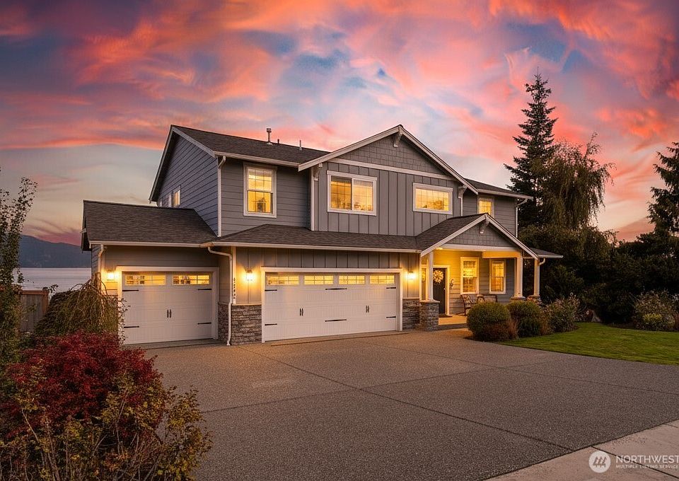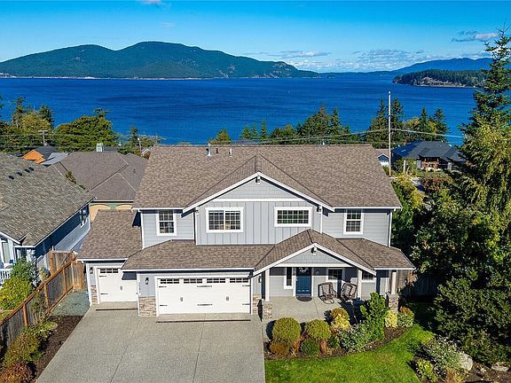 Set on a quiet corner lot, this spacious 4-bedroom, 3-bath home offers over 3,000 square feet of living space with a versatile layout. The main level features open-concept living and dining areas plus a large kitchen designed for entertaining, complete with a walk-in pantry and plenty of storage and counter space. The upper level includes all four bedrooms and a large family room providing extra space for relaxing, play, or hobbies. The 3-car garage includes an electric vehicle charging station and offers excellent space for vehicles, work, and storage. Enjoy beautiful views of Guemes Channel and relax on the deck while boats pass by. All just minutes from town, schools, parks, and more—a wonderful opportunity to own in Anacortes!