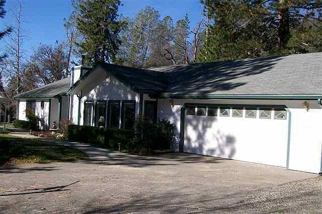 Home is within 2 miles of Bass Lake & public boat launch. Located among the pines, oaks, cedars and manzanitas, a park like setting in the Wishon area just outside of North Fork. Very custom home, 3BR/2BA of approx. 2,000SF, den with rock fireplace, Lg living room and dining area w/glass sliders to outside that has large concrete patio. Tile entry & floors thru-out. Lg game room, numerous outbuildings, including a shop, fenced for stock, garden area and fruit trees. Quiet cul-de-sac. Backs to BLM land.