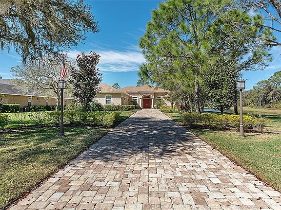 Your PRIVATE OASIS awaits! This stunning custom home is situated on over 3/4 of an acre with breathtaking views of it's tranquil waterfront and wrap around conservation area. Enjoy mother nature from your own backyard. Exquisite details and custom features of this 3Beds/Den/3Bath/3Car includes, a welcoming extended paver driveway, fenced park-like setting, a covered outdoor living space with built-in TV cabinet over your outdoor kitchen, designer tile work throughout great room, dinning room and large open kitchen with high end granite, rich wood cabinets, double oven, tons of prep space for cooking or entertaining, surround sound, tray ceilings, rope lighting, extended laundry room with tons of cabinets, secondary bedroom is private and can be used as secondary suite, huge master suite with two large walk-in closets both offering warm custom closet built- ins, Rain head walk-in shower, his and hers vanities and water closets for optimal privacy and central vacuum throughout. Storage is not an issue here with an extra large supply pantry and broom closet. Not to mention the savings you'll enjoy on your electric bill and insurance, having Icynene insulation and impact windows. Your friends and family will have garage envy once they see your new oversized three car garage with a gorgeous epoxy floor treatment, a large workstation with tons of cabinets and YES, it still offers space to park three cars! Come see for yourself, all that this amazing home has to offer!