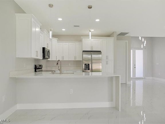 Beautiful New Construction!!! Excellent location! Just blocks from Lee Blvd. Property is ready to move in! You are sure to love !!! This great room design home has 3 bedrooms 2 baths, Other features of this home include: Traditional eat-in open kitchen , an island with room for seating, Stainless steel kitchen appliances new to include: Refrigerator, dishwasher, microwave & range. Includes washer and dryer. Quartz countertops in kitchen and baths, Dual sinks in the master bathroom, Porcelain Tile Floor throughout, Master suite features walk-in closet Large. Impact Windows and doors. double door entry. Lanai is relaxing. Covered back patio and front yard landscaping. Not located in a flood zone!!! **Great location easy access to Fort Myers, Seconds away from elementary, middle and high schools and the library as well!. Don't let this opportunity pass you by Schedule a Showing today!