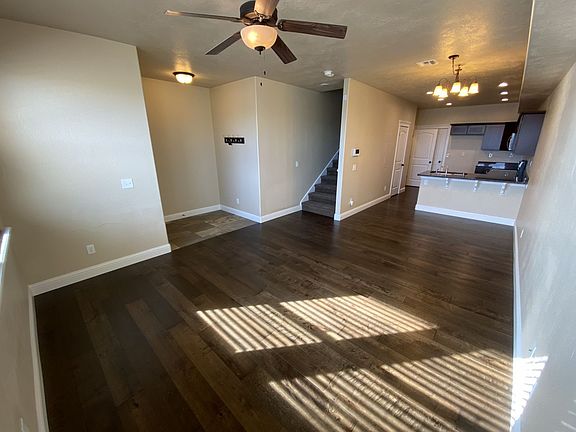 This is a 2 bedroom, 2.5 bath townhouse in Elko, NV. This luxurious townhome has tile flooring throughout the downstairs. The kitchen features granite countertops, an electric oven/range, and a pantry. There is a half bath on the main level. The upper level of the home hosts the master bedroom, laundry room, second bedroom, and second bath. The master bedroom features a walk-in closet and master bath complete with a tile shower/tub. This townhome has an attached single-car garage. The front yard is fully fenced, fully landscaped, and has automatic sprinklers. Call today to view this welcoming home!