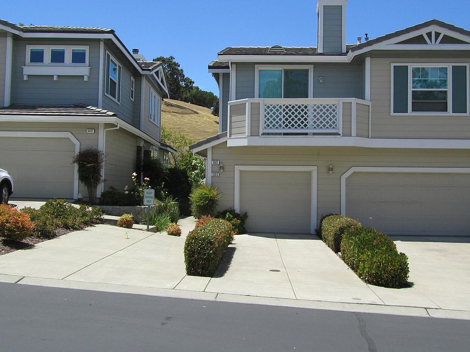 OPEN Sat/Sun 7/18 & 7/19 1-4. Super "Summer" model nestled at the rear of the complex. New paint, carpet & b-boards! Gleaming hardwood floors in DR-LR & kitchen. Slate tile in entry & both baths. Kitchen features granite tile counters and newer stainless steel appliances! Inside laundry-fireplace & 1attached & 1detached garage! Spacious master suite with walk-in closet, 2nd bedroom without closet. Cozy balcony looks out to surrounding hills. Walk to community pool.