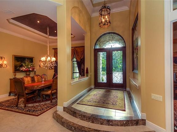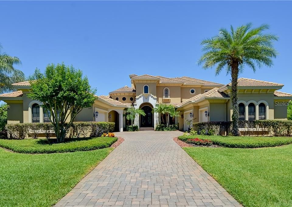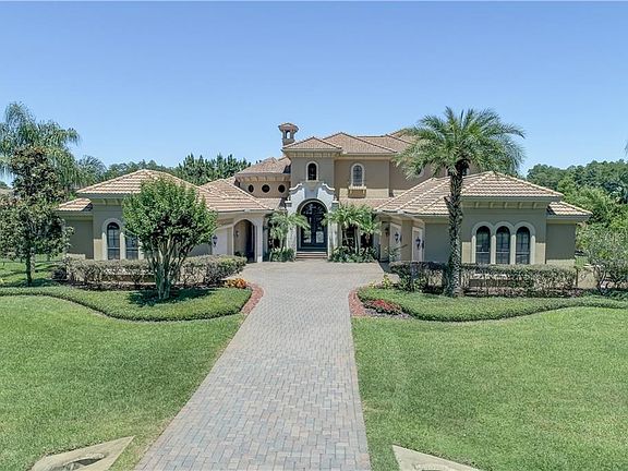 This majestic luxury Arthur Rutenberg home was custom designed with attention to detail throughout. Courtyard entrance leads to beautiful expansive foyer with open views of the formal Dining & Living room. A wall of windows in the formal living area with a fireplace, soaring trey ceilings, crown molding and finishes, abounds this open functional layout. A wet bar off the kitchen & formal Living room is perfect for entertaining. The Kitchen is Chef designed for the serious cooks. Kitchen is equipped with a large island, glazed maple cabinetry, additional granite counters and a walk-in pantry. First and Second floor Owner suites are great for generational families. First floor Owner Suite has a double door entrance with walk-in His & Hers closets, plantation shutters and morning bar. Owner Suite bath has sunken garden tub overlooking private courtyard and a roll-in shower. The study has 18' custom ceiling with a beautiful hand painted compass, porthole windows and custom built-in cabinetry. Secondary en-suite bedrooms downstairs offer walk-in closets, woods floors and crown molding. The second floor offers a bonus room with a custom granite bar & cabinets. Stacking corner sliders open to a large screened balcony that offers addition space for entertaining and views of tranquil backyard and pond. Second floor Owner suite is quite large with access to screened balcony. The Owner suite bath is complete with double sink vanity, garden tub and corner shower. Spectacular Theatre room is fabulous and just like being at the movies! The huge Laundry/Mud room is great for families. Pool/Spa is heated by solar and gas. A 5-car garage is a car enthusiast's dream! 5th car garage has AC. The backyard is fenced and has pergola for quiet sittings. Homes sits on almost an acre lot and has a well just for watering lawn and luscious landscaping. Home has too many upgrades to list. A Truly Impressive Home that is a Must See!