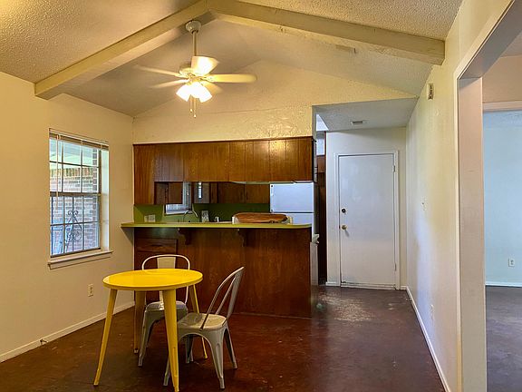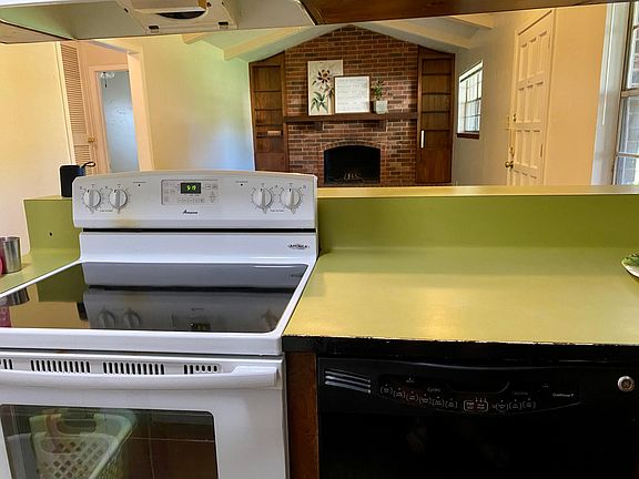 Stained concrete floors, ceiling fans in every room, efficient kitchen with 70's charm and bar seating. Dishwasher, convection electric range, disposal and fridge all make cooking and entertaining easy.