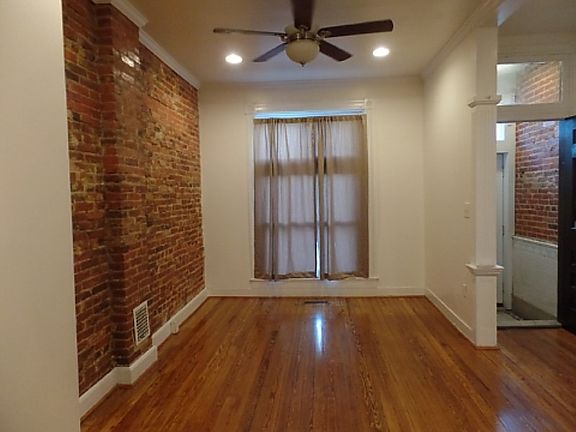 Two Bedroom with a den Hardwood Floors All hardwood floors AC window units exposed brick washer/dryer microwave half bathroom on first floor recessed lights and ceiling fans throughout house close to transportation lovely home For more properties like this visit GoSection8.com.