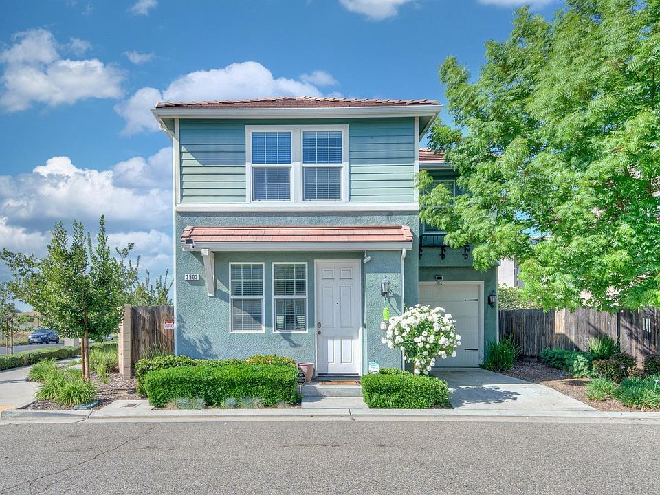 Welcome to your dream home nestled on a huge corner lot, offering picturesque views of surrounding nature and nearby walking trails. This stunning 2-story residence boasts an inviting open concept design with newer laminate flooring throughout, seamlessly connecting the spacious living area with the gourmet kitchen on the main floor. A convenient half bathroom adds functionality to the downstairs space. Upstairs you're greeted by a tranquil ambiance where three generously sized bedrooms await. The Primary suite beckons with its private bathroom, offering a serene retreat for relaxation. Laundry facilities conveniently located upstairs streamline daily chores, adding to the home's practicality and efficiency. Outside, the charm continues with additional guest parking available on the cul-de-sac, ensuring hassle-free entertainment for friends and family. The large L-shaped backyard layout offers plenty of space for various activities or relaxation. A concrete patio provides a solid foundation for outdoor furniture or a grill and the newly installed synthetic lawn adds a touch of lush greenery without the hassle of maintenance, offering a vibrant backdrop for outdoor activities or lounging in the sun. Education is a top priority in this neighborhood, with renowned schools like Bud Rank Elem. and Clovis North HS. Whether you're seeking serene surroundings, modern comforts, or a vibrant community atmosphere, this residence offers the perfect blend of luxury and convenience.