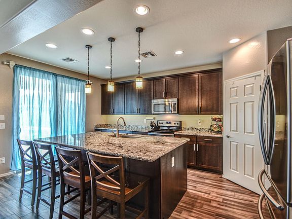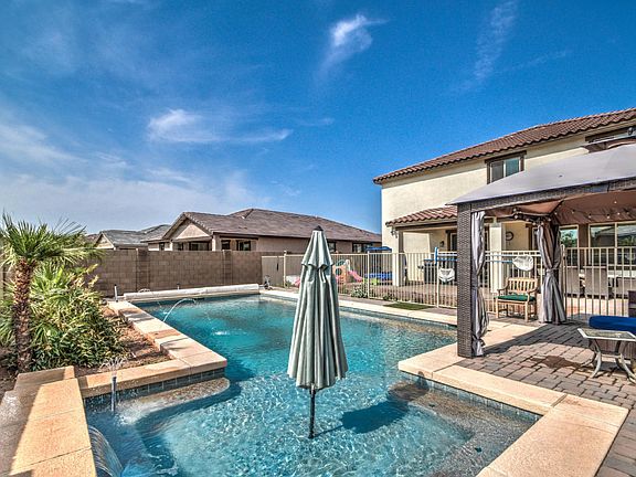 STUNNING TWO STORY HOME WITH PLUSH CARPET AND WOOD LOOK TILE FLOORING. SHARP EAT-IN KITCHEN WITH STAINLESS STEEL APPLIANCES, HIGHLY UPGRADED BIANCO ANTICO SLAB GRANITE, 42' CABINETS W/CROWN MOLDING AND UNDER CABINET LIGHTING. VOLUME CEILINGS AND SURROUND SOUND PRE-WIRE. GORGEOUS MASTER BATH WITH DOUBLE BARN DOOR ENTRANCE FEATURES TUB, SEAMLESS SHOWER AND DUAL SINKS. AMAZING BACKYARD WITH FENCED SALT WATER POOL HAS MULTIPLE WATER FEATURES ALONG WITH A MICRO PEBBLETEC FINISH AND A POP-UP CLEANING SYSTEM WITH VARIABLE SPEED PUMP. OUTDOOR RAMADA FOR EXTRA SHADED SEATING, EZ TO MAINTAIN LANDSCAPING WITH GARDEN BEDS FOR FRESH VEGETABLES AND STRAWBERRIES. 3 CAR TANDEM GARAGE, EXTENDED DRIVEWAY, WALKWAY AND BACK PATIO AREA ALL HAVE BEEN PAVED WITH COBBLESTONE PAVERS. HURRY THIS WILL GO FAST!!!