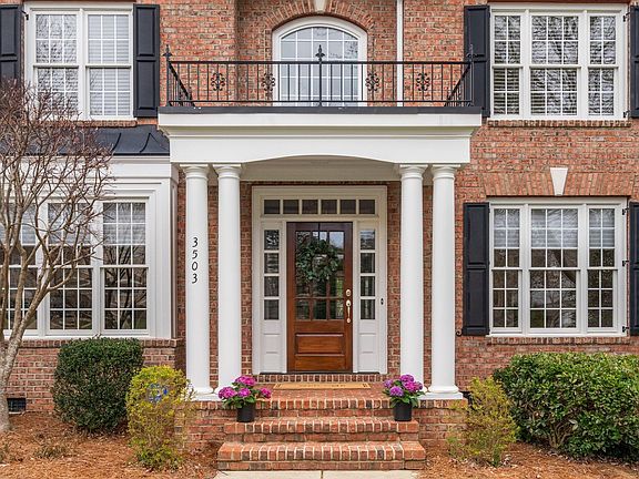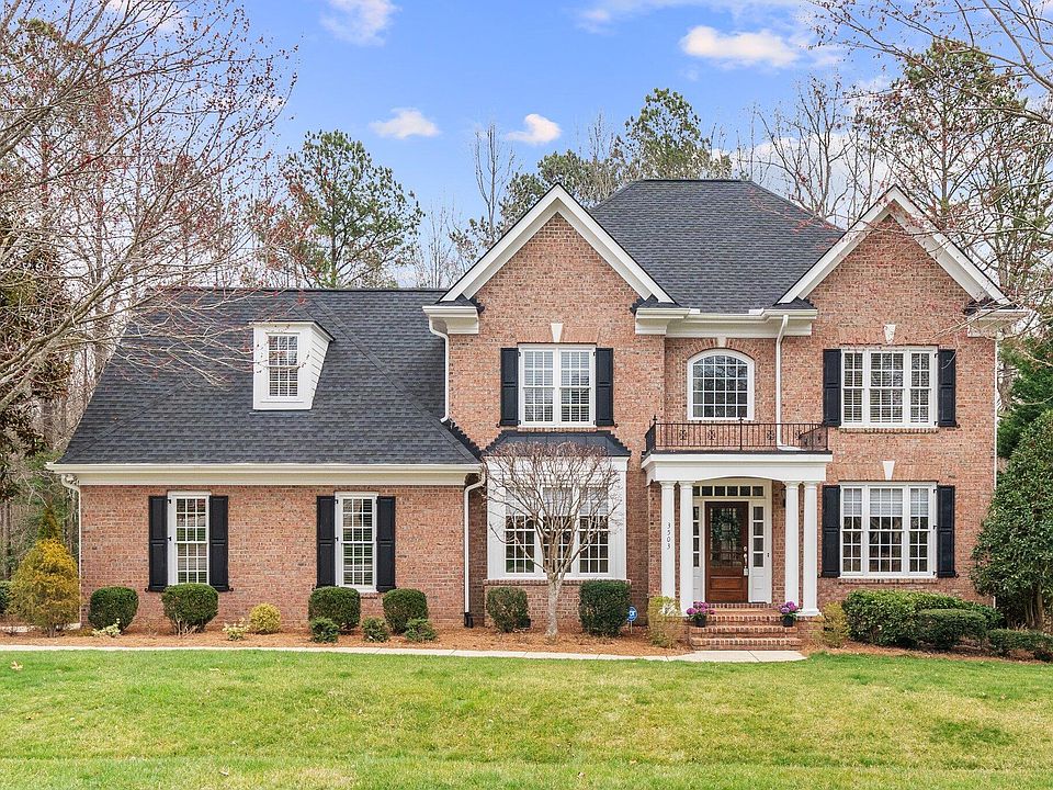 Immaculately maintained 5 bd, 3.5 bath beauty in the highly desirable 27539. Traditional perfection- stately brick home with side load garage backing to heavy wooded buffer and creek. Gorgeous hardwoods throughout entire first floor, formal dining room, office, butler's pantry, huge main pantry, open floor plan and first floor primary bedroom oasis with jetted tub, multi-head spa shower, huge walk-in closet with hookups for W/D. Enjoy watching the wildlife from your eat-in kitchen and large screened porch! From the kitchen ascend the back stair case to the huge bonus room, 4 large secondary bedrooms, dedicated laundry room with sink and cabinetry, 2 full baths, and stairs to the unfinished attic for all of your storage or expansion needs. The formal staircase leads you back to the main front hall making this the truly perfect floor plan. Don't miss the clean as a whistle walk-in crawlspace. Quiet cul-de-sac street in the beautiful Park at Langston neighborhood very close to the future 540 entrances, but feels like you are far away in this serene park-like setting. High end ultra efficient HVACs replaced in 2018/19, new roof 2020, new hot water heater 2023. Washer, dryer, fridge convey!