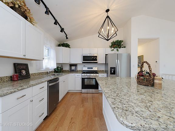 It's easy to see yourself living in this classically updated raised ranch with lots of natural light and a modern, open floor plan. Recently renovated kitchen utilizes space beautifully with plenty of new cabinets, stainless steel applicances, and an island that accommodates as both eating and work areas. Wood floors encompass the main upstairs living space leading to a deck overlooking the large, fenced in backyard w/shed. New carpet in bedrooms and lower level, both full bathrooms are neutrally redone. Main level bathroom has double sink, tub/shower surround and adjoins to master bedroom. Lower level family room can easily double as an office or in-law arrangement with it's full bathroom, closet and easy access through attached 2 car garage. Highlands of Island Lake is an ideal location around the bend from lake living and the conveniences of Route 176. HOME IS VACANT.
