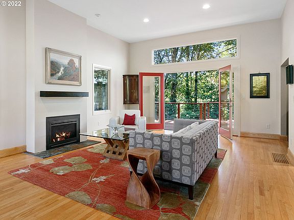 Private, impressive & historically significant Council Crest stunner. Living area w/ 10ft ceilings, primary bedroom suite & garage on 1st floor offering easy main-level living in a peaceful, retreat-like setting. Gourmet kitchen w/ Sub-Zero fridge, double oven, gas range & wine fridge. Bedroom suite/expansive office upstairs w/ mountain view! 3rd bedroom w/ Murphy bed & full bathroom on lower. Large, attractive deck overlooking forest & manicured yard. Council Crest Park & downtown minutes away. [Home Energy Score = 1. HES Report at https://rpt.greenbuildingregistry.com/hes/OR10202475]