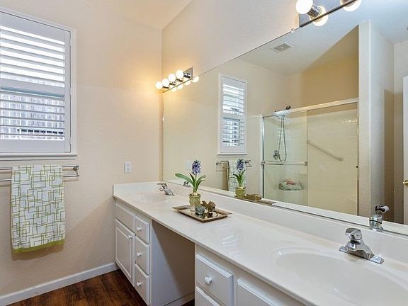 Welcome to Springfield Award winning 55 Plus community in Rocklin. This adorable 2 br. 2 ba. cottage is located ii a small cul-de-sac. Covered front porch allows you to relax on warm summer evenings. This home has been painted inside and out withing the last year. Kitchen has upgraded counters, white cabinets, pantry, (refrigerator included and tile gives a clean neutral pallet. Master bedroom has a large walk in closet, laminate wood floors and large bathroom. The house has beautiful white shutters, large laundry room (washer and dryer included and two car garage. Newer air conditioner within the last two years. Backyard was professional landscaped with retaining wall, artificial lawn and beautiful shade trees. Springfield has two pools, two club houses, tennis and exercise rooms. Hurry this won't last