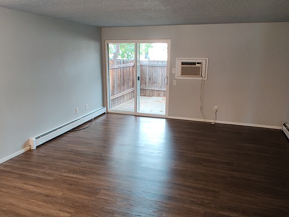 Townhouse style apartment with updated floors and paint. Features include AC, dishwasher, on-site laundry, private patio with sliding glass door, off street parking and large open living room. Living space is 975 sqft. Fantastic location with convenience for shopping and commute. Tenant responsible for paying electricity directly. Snow removal, Lawn care, water/trash/sewage and heating gas are covered in $150/mo utility fee. Deposit and Pet policy: 1x rent is required deposit. Pets are considered on case by case basis with $40/mo pet rent per animal. Lease Term and general guidelines: 12 month lease. No smoking allowed. Owner pays for heat and laundry