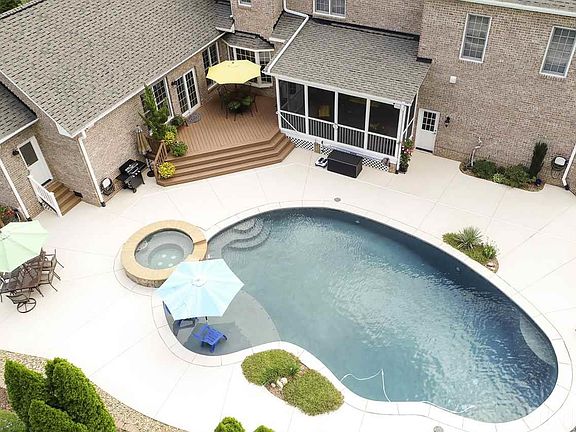 Stay-cation Anyone? Executive all brick home on 1.13 acre cul-de-sac private lot with heated in-ground pool & hot tub waterfalls. Enjoy entertaining with beautiful pool side patio, deck, screened porch & first floor rec room perfect for pool table & card games. Chef's kitchen with granite island, gas cook-top, wall convection oven & microwave. First floor home office. Welcoming front porch. Lavish Master Suite with dual walk in closets. Spacious secondary bedrooms. 3-car garage. This home has it all!