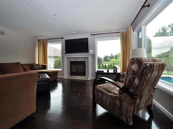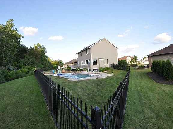 Welcome to The Coves at Westlakes. What a great location in Aboite, so convenient to everything. This private back yard oasis is calling to you. Quality abounds in this Bob Buescher built two story that backs up to wooded area and has spectacular views of the sunset over the pond. First floor features; a Custom kitchen w/breakfast bar, bright breakfast nook, cozy family room with fireplace, a formal dining room and a office/den. 4 big bedrooms up, 19x12 master has walk-in closet, lavish bath w/dbl vanity, garden tub and separate shower. Finished daylight basement w built in entertainment center, a workout room and a full bath. Plenty of storage in unfinished area. 31x21 garage offers workshop/storage area. Freshly painted deck has view of the pool and nightly sunsets. Pool installed by Treadway Pools. Fence by R & C Fence. Landscaping by Ewing.
