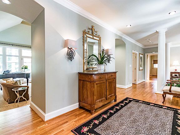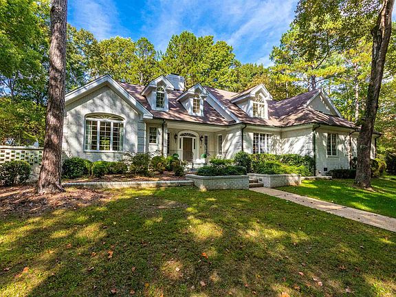 Nestled in nature, this rare property is a quiet retreat close to everything the Triangle offers. One of three homes in an exclusive gated community, this custom build sits atop 3.1 acres in a peaceful, wooded setting. Grounds include stately circle drive, ample parking, idyllic enclosed garden with charming garden house & room for a pool. Generous master suite on main, 3BR's up. Large open spaces throughout. Meticulously maintained with quality craftsmanship. Great home for entertaining. No city taxes!