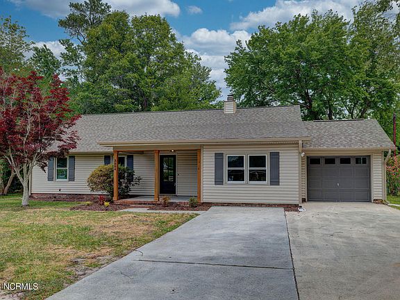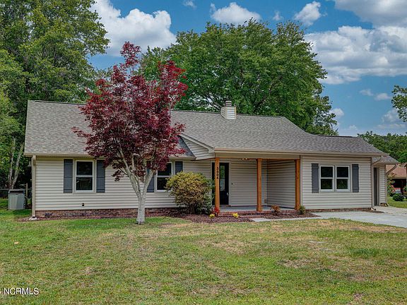 Showings start Thursday 5/25. Located in desirable Middle Sound Loop area where the saltwater surrounds, this property is a short walk to Ogden Elementary School. 3504 Middle Sound Loop Rd is a thoughtfully renovated ranch sitting on 1/3 acre with over 1800sf of living space including 3 bedrooms, 2 bathrooms, flex room, foyer, spacious living room, eat-in kitchen, laundry room, and garage. 2023 updates include new roof, new LVP flooring throughout common areas, new carpet in bedrooms, new vanities and tile in bathrooms, fresh paint, black hardware & hinges, all new stainless appliances, subway tile backsplash, and updated plumbing and light fixtures throughout. Huge kitchen offers a raised breakfast area overlooking shaded back yard. Shiplap accents the coffee bar with floating shelves and sconce lighting. Wall sconces also flank the gas log fireplace with stone surround and mantle. Laundry room also serves as a drop zone with bench seating and more shiplap, but is easily shut off from surrounding area by barn doors. Frosted glass barn door also separates master bath from rest of the primary suite. The stained wood columns perfectly frame out the covered front and rear porches giving this home a more rustic look. You'll love the thoughtful decisions that have been made, and you'll love living in an area so many want to call home. Welcome to the Loop Life!