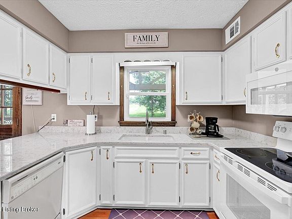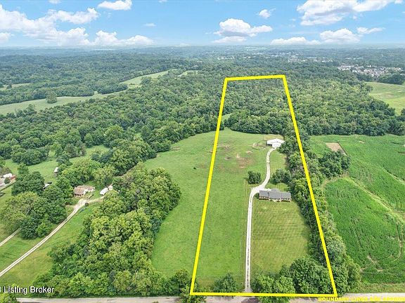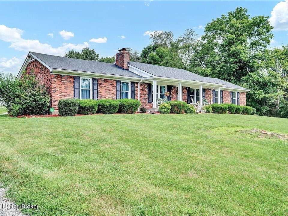 If you are looking for a 10+ acre mini-farm with a fantastic three bedroom, two bathroom brick ranch and massive pole barn out back, then look no further. This home is the perfect mix of country and city as it is located so close to Louisville and yet has the privacy of a country home with NO HOA. All of the main level windows have recently been replaced as well as the HVAC, gutters, and various kitchen updates. New carpet was installed in two of the three bedrooms, and the hallway bathroom has a beautiful vanity with wainscoting surround. Watch the thunderstorms roll in or relax to stunning sunsets from either the screened-in porch or out on the freshly poured concrete patio. An unfinished basement that matches the footprint of the house sits below with a vented wood burning stove that will remain. The grounds consist of about half wooded and half cleared spaces. There is a huge pole barn at the rear of the property that has 18' overhangs on each side. In the woods out back, there is a pond and enough trees to keep the basement stove glowing for a lifetime. This land is perfect for kids, or someone who just wants solitude, but still wants to be minutes from a grocery store. This home is less than 30 minutes to both downtown and the airport, and under 10 minutes to I265. The sellers are also offering a one year HSA Home Warranty for peace of mind. Call now to schedule a showing on your own little piece of paradise.
